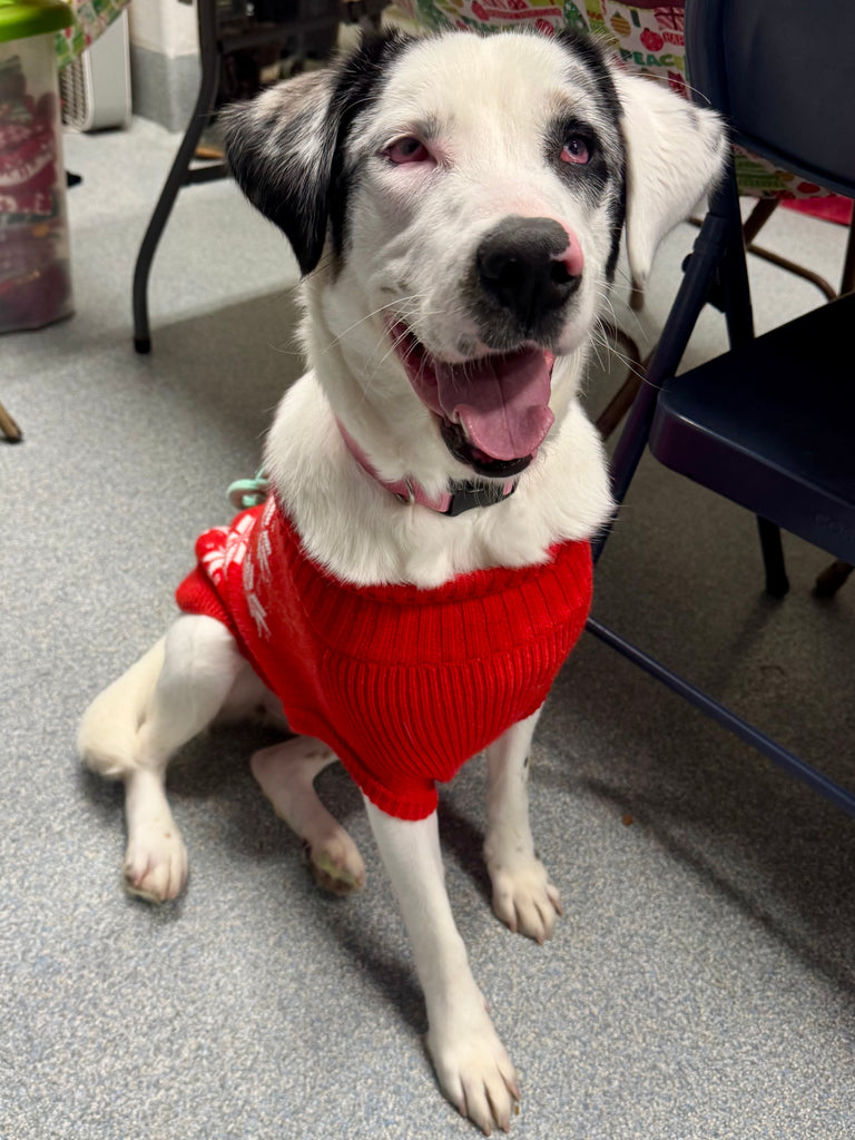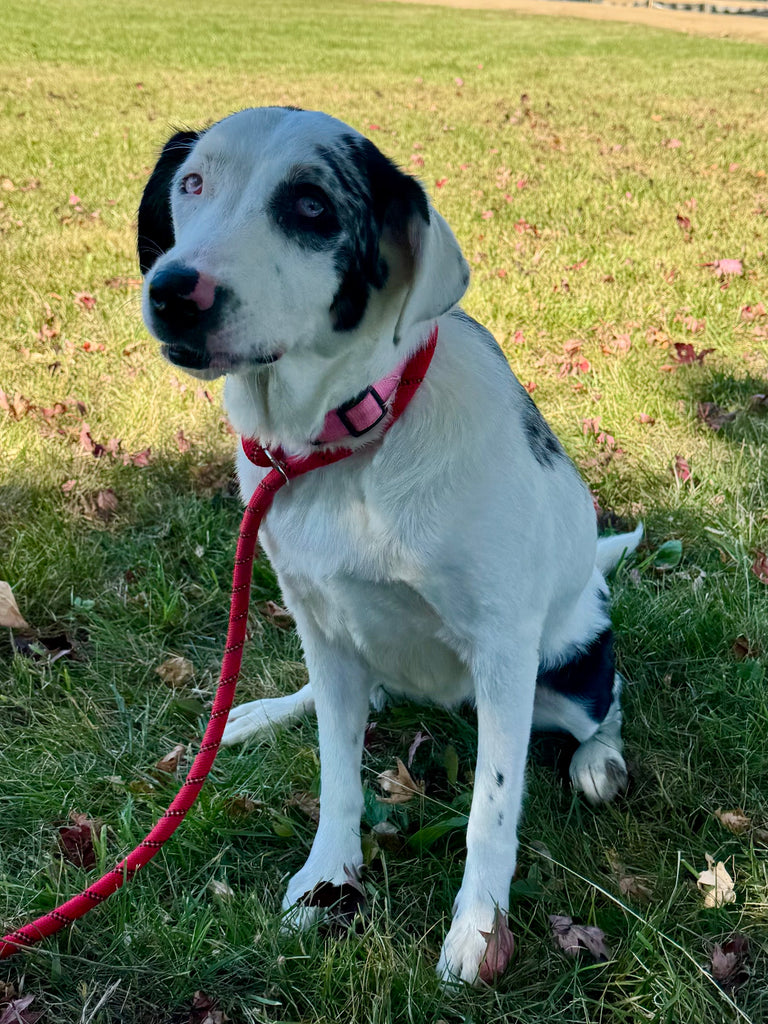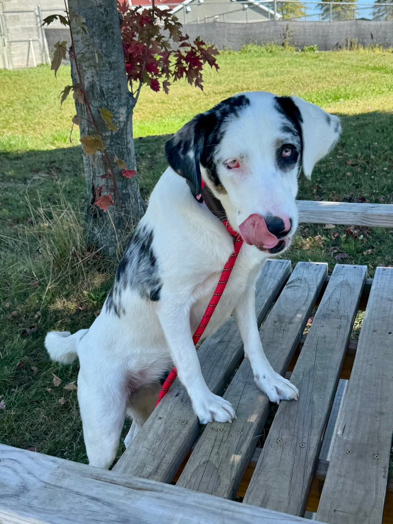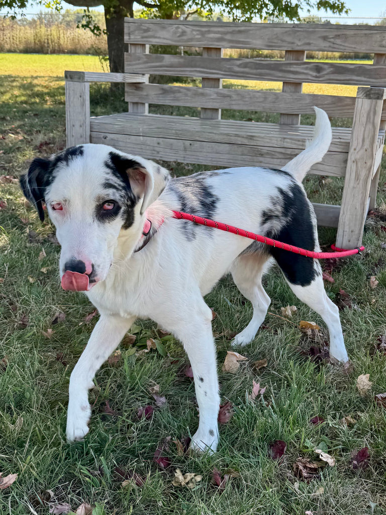 This is Aruba! She is a 1-year-old Blue Heeler mix weighing 45 lbs. She is spayed and current on all vaccines.