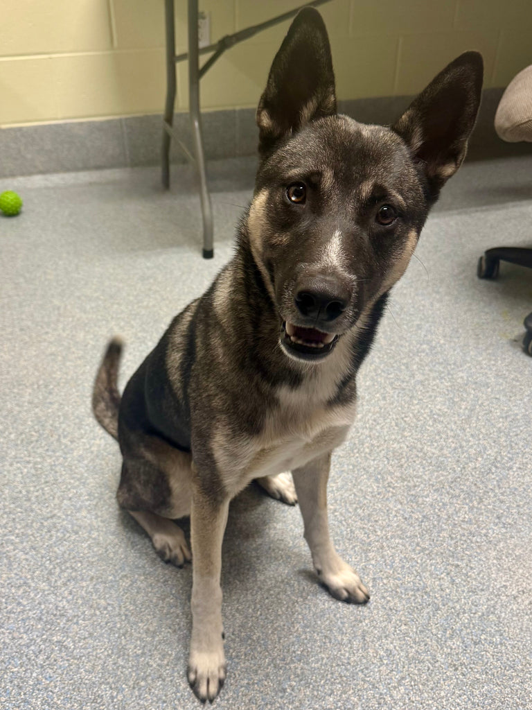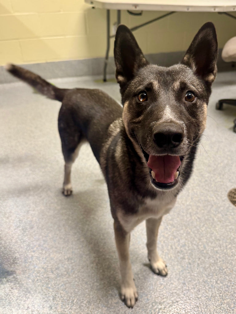 Deebo is a 2-year-old Shepherd Mix weighing 44 lbs. He is current on all vaccines but not yet neutered - he will come with a voucher to do so.