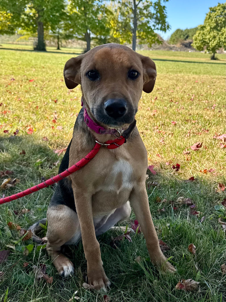 Meet Erika! She is a 5 month old mixed breed dog weighing 33 lbs. She is spayed and current on all vaccines.