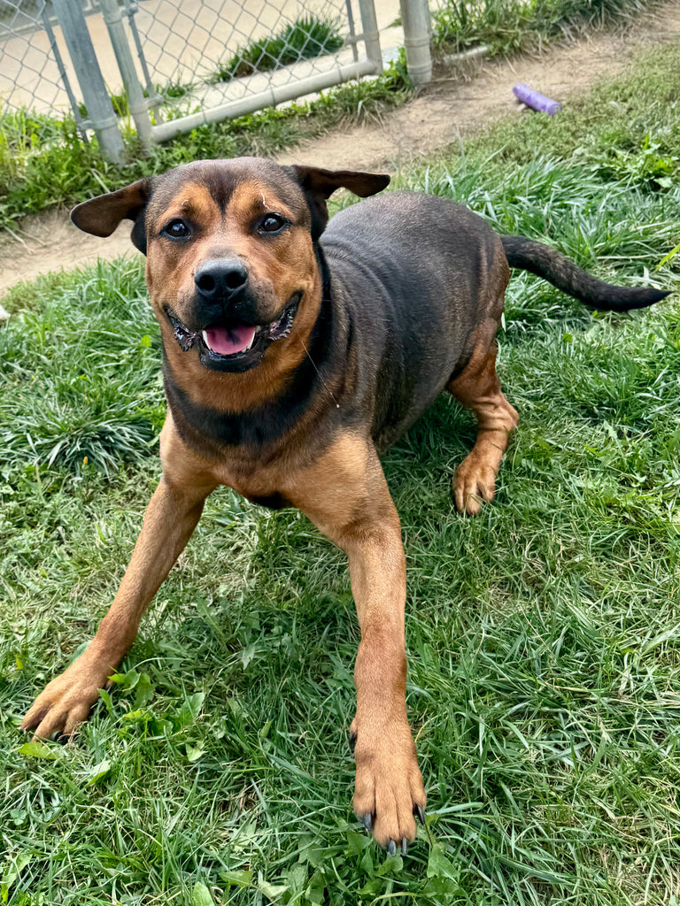Honey is a 2-year-old mixed breed female that is not spayed. She is up to date with her vaccinations. She weighs 67 pounds and is as sweet as can be. She just needs someone to trust and love.
