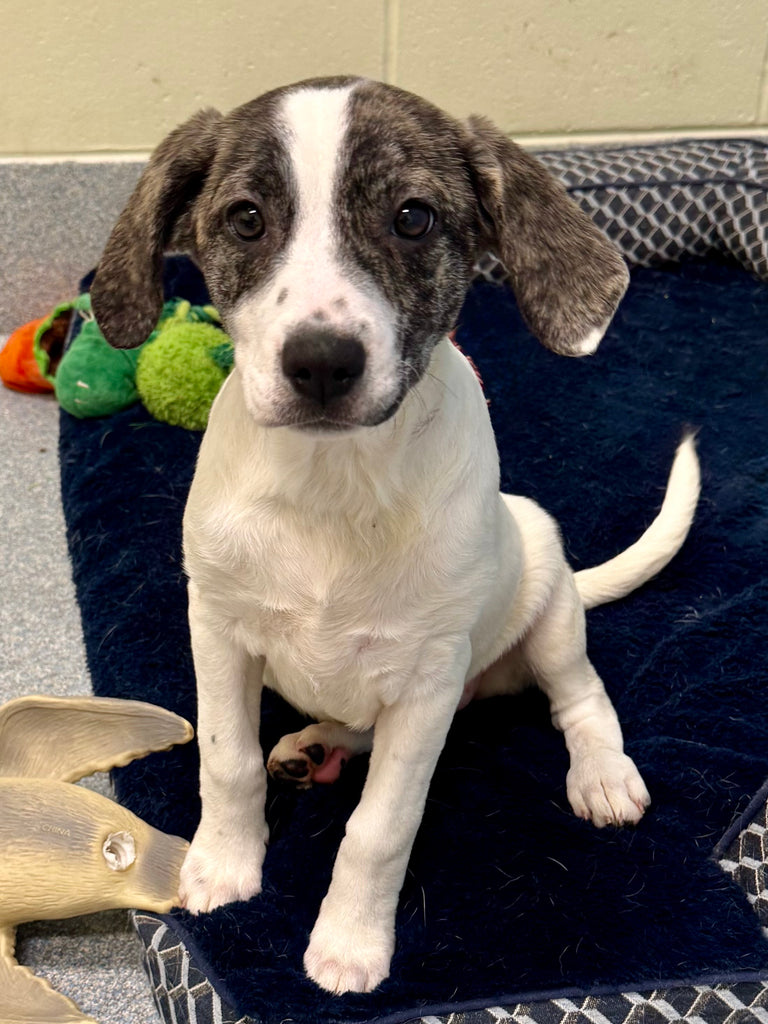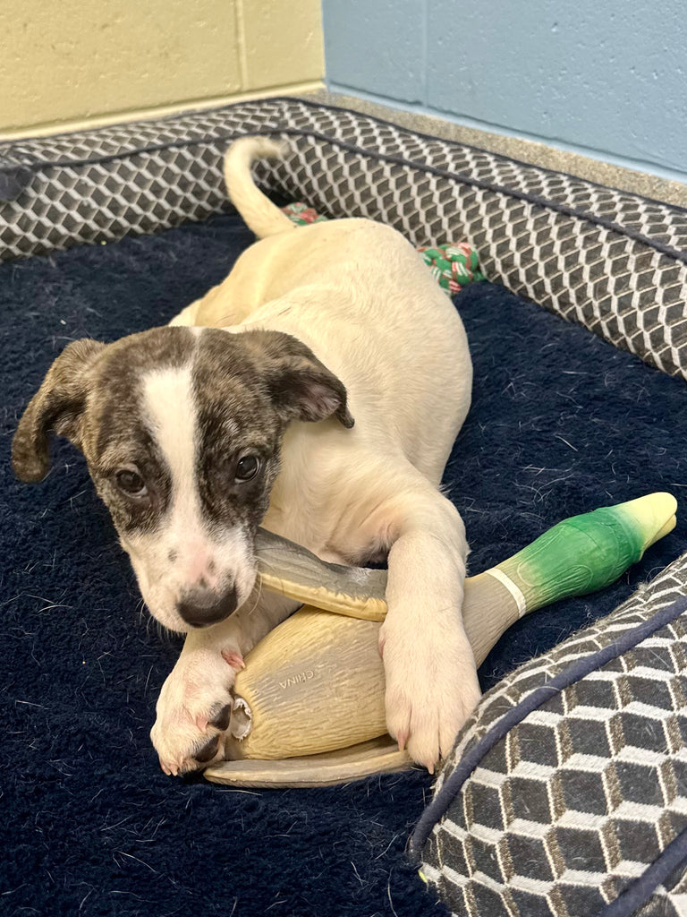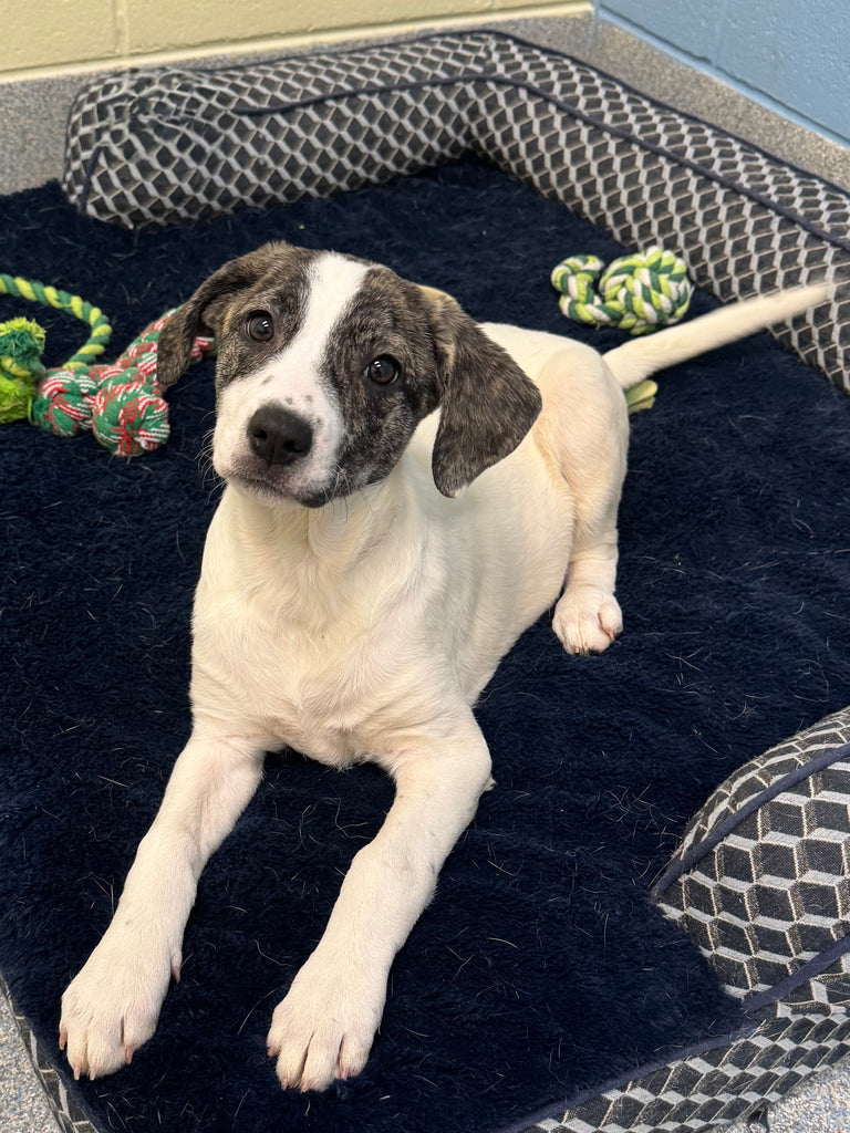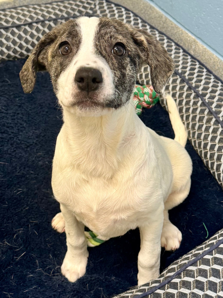 Lily is a 3-month-old mixed breed female. She is current on all vaccines but has not yet been spayed. She will come with a voucher to be spayed at adoption. Lily weighs 18 lbs - we don't know what breeds she is mixed with, but we think she's going to be a very big girl when she grows up!