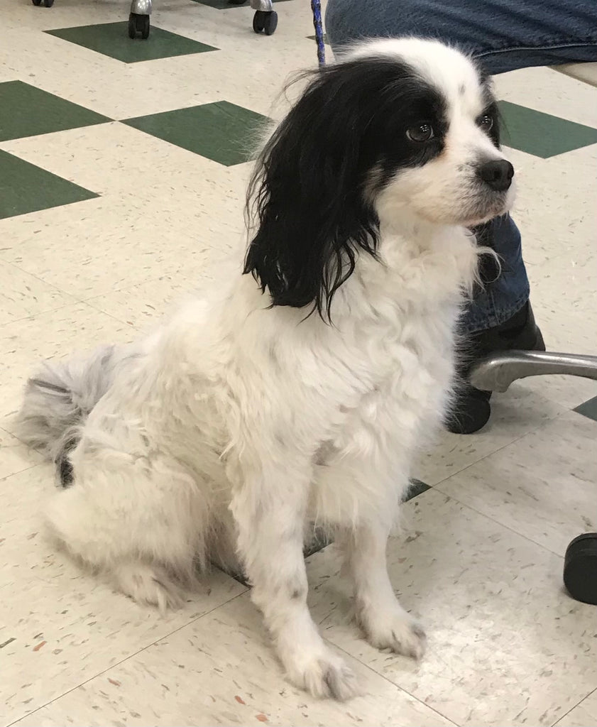 He is a male, 11-year-old Cavalier King Charles Mix weighing 20 lbs. He is neutered and current on all vaccines.