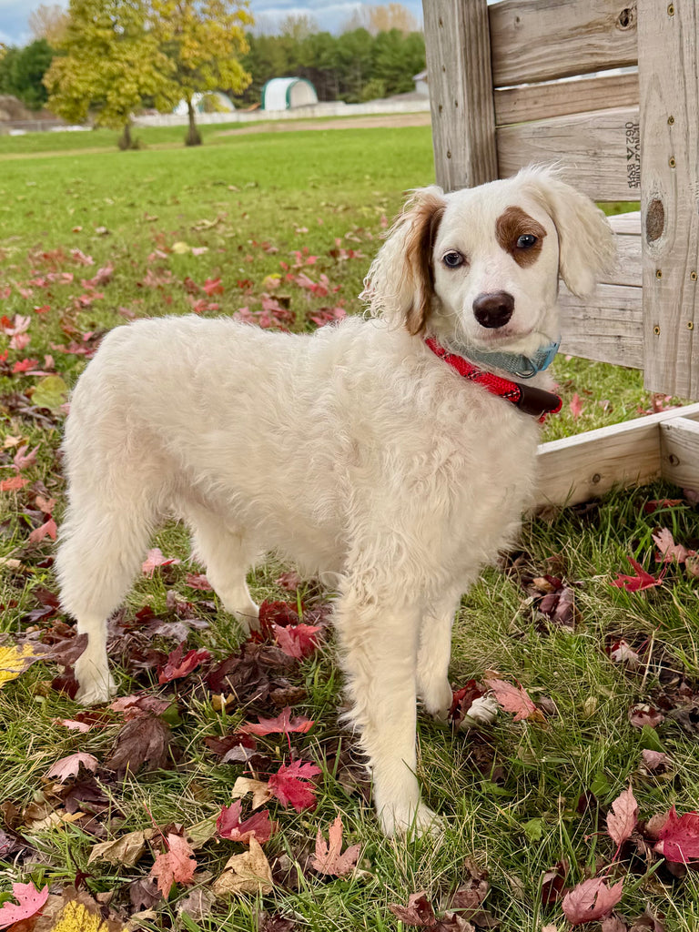 1 year old male Cockapoo, 23 lbs. He is neutered, microchipped, and current on all vaccines.