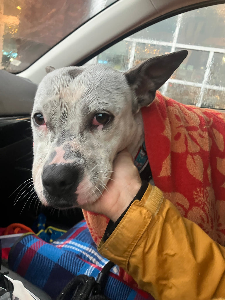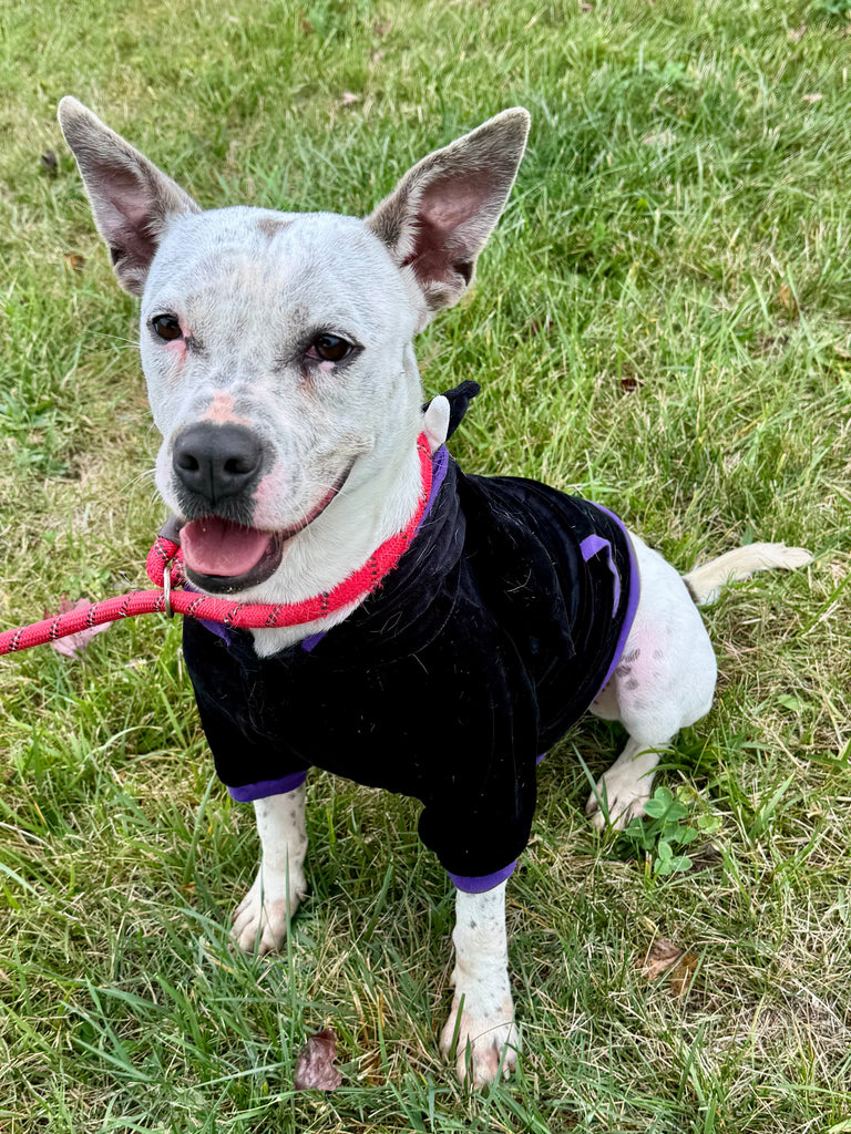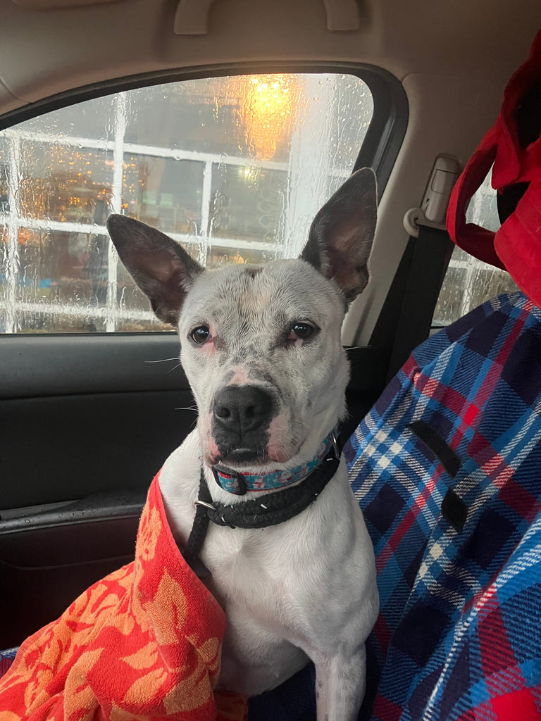 Speckle is a mixed breed, adult female. She is spayed and up to date on all of her vaccines. She weighs 37 pounds. Speckle is not a fan of her kennel and would love a yard to run and call her own. She is super affectionate and just wants a family to call her own. Speckle got to go to the Reindog Parade this year - she did well with other dogs and enjoyed the car ride!